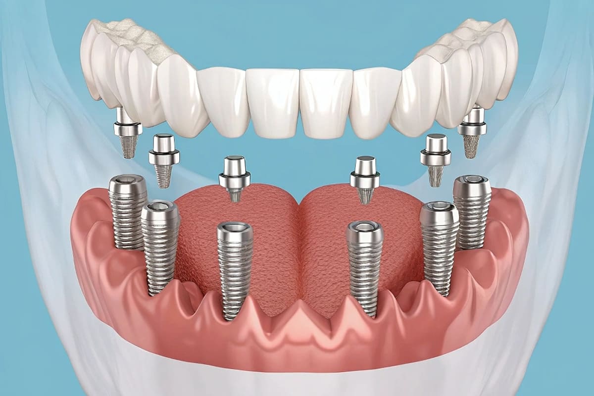 Благодаря такой конструкции сохраняется внешний вид, неотличимый от родных зубов, равномерно распределяется нагрузка на челюсть, восстанавливается костная ткань.